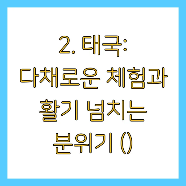 2. 태국: 다채로운 체험과 활기 넘치는 분위기 (🇹🇭)